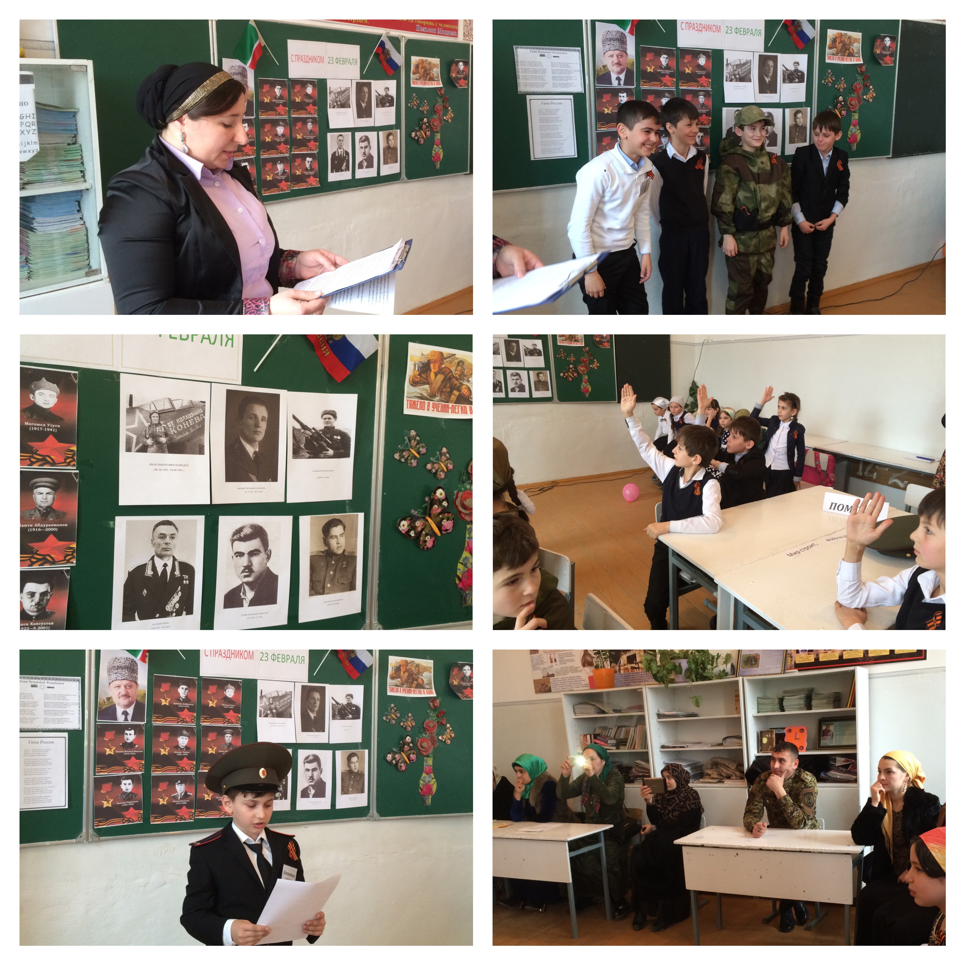 Накануне Дня Защитника Отечества, в рамках реализации Единой Концепции духовно –нравственного воспитания и развития подрастающего поколения Чеченской Республики, также в целях исполнения подпрограммы 5 «Допризывная подготовка детей и молодежи Чеченской Республики «Государственной программы Чеченской республики «Развитие образования Чеченской Республики на 2014 -2020 годы», утвержденной постановлением Правительства Чеченской Республики от 19 декабря 2013г. №345, и в целях активизации воспитательной работы 20 февраля 2016 г. классный руководитель 3 Г класса Тайсумова М.А. провела классный час «А ну-ка, мальчики!», посвященный Дню защитника Отечества.
