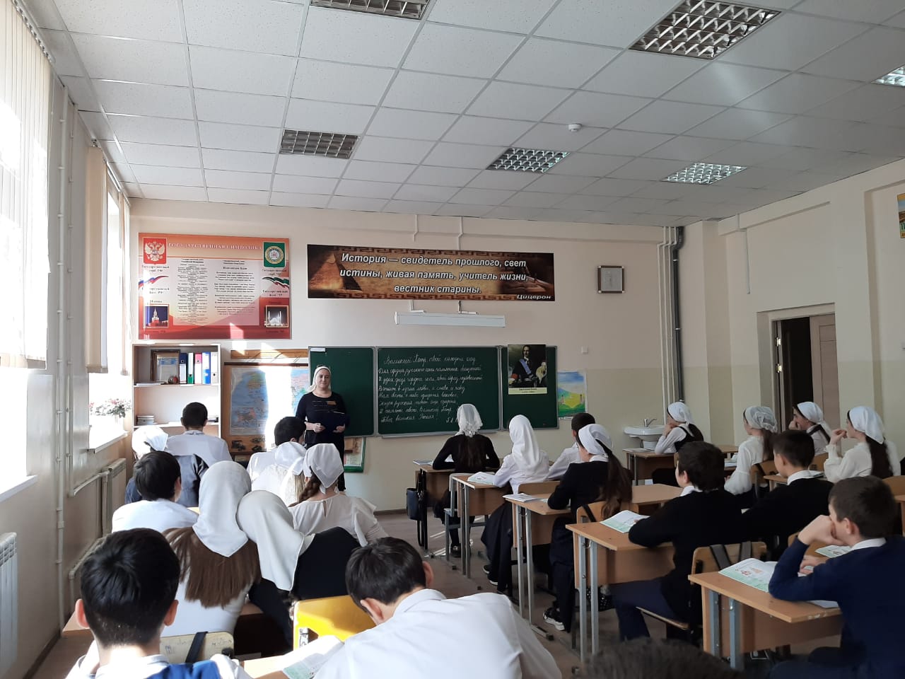 20.09.202220.09.2022 г. в МБОУ "Гудермесская СШ №5" учителем истории и обществознания Висамирзаевой Ш.М. в8б и 11 А классах был проведен Всероссийский Петровский урок. Цель урока: повышение познавательного интереса обучающихся к жизни и деятельности Петра I, его вкладу в развитие российской государственности и укрепление Российской Империи.