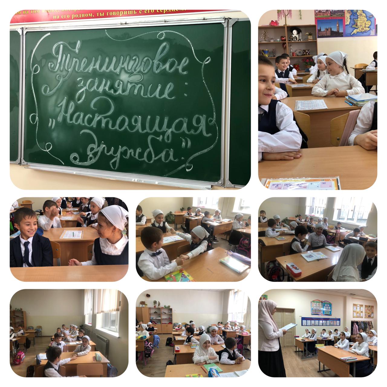 18.10.2022В МБОУ «Гудермесская СШ №5» 18.10.22г в рамках Недели психологии среди обучающихся начального общего образования было проведено тренинговое занятие с психологом на тему: «Настоящая дружба», целью которого являлось формирование и развитие доброжелательного отношения среди одноклассников, чувство сплоченности.