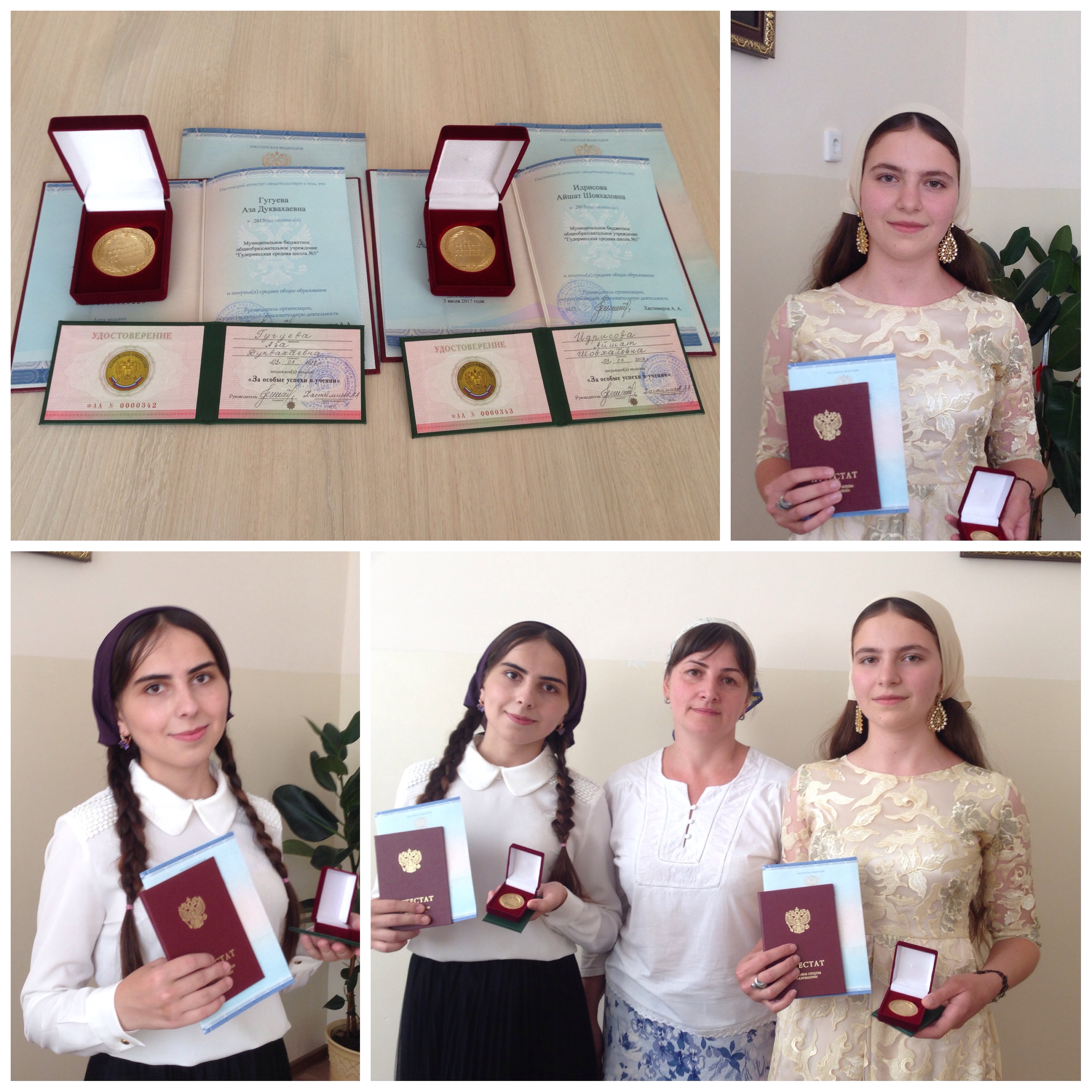 В школе вручены золотые медали нашим талантливым выпускницам: Гугуевой Азе и Идрисовой Айшат. Талантливые, умные, красивые! Поздравляем всей школой. МОЛОДЦЫ!