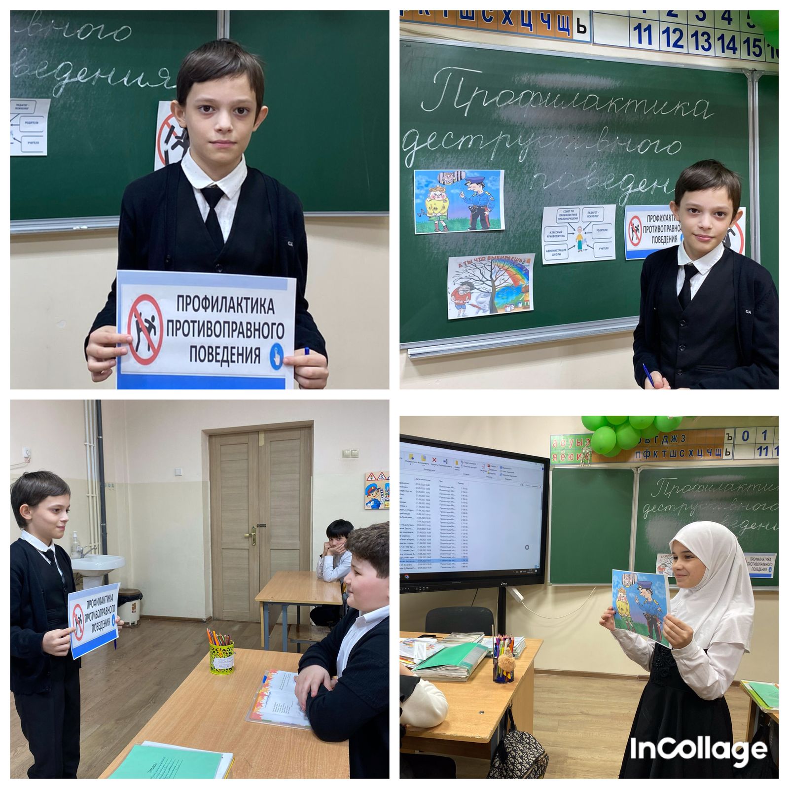 В МБОУ «Гудермесская СШ 5» Педагогом-психологом Данияловой Д.Т была проведена беседа с обучающимися 4-ых классов по профилактике противоправного, деструктивного поведения.