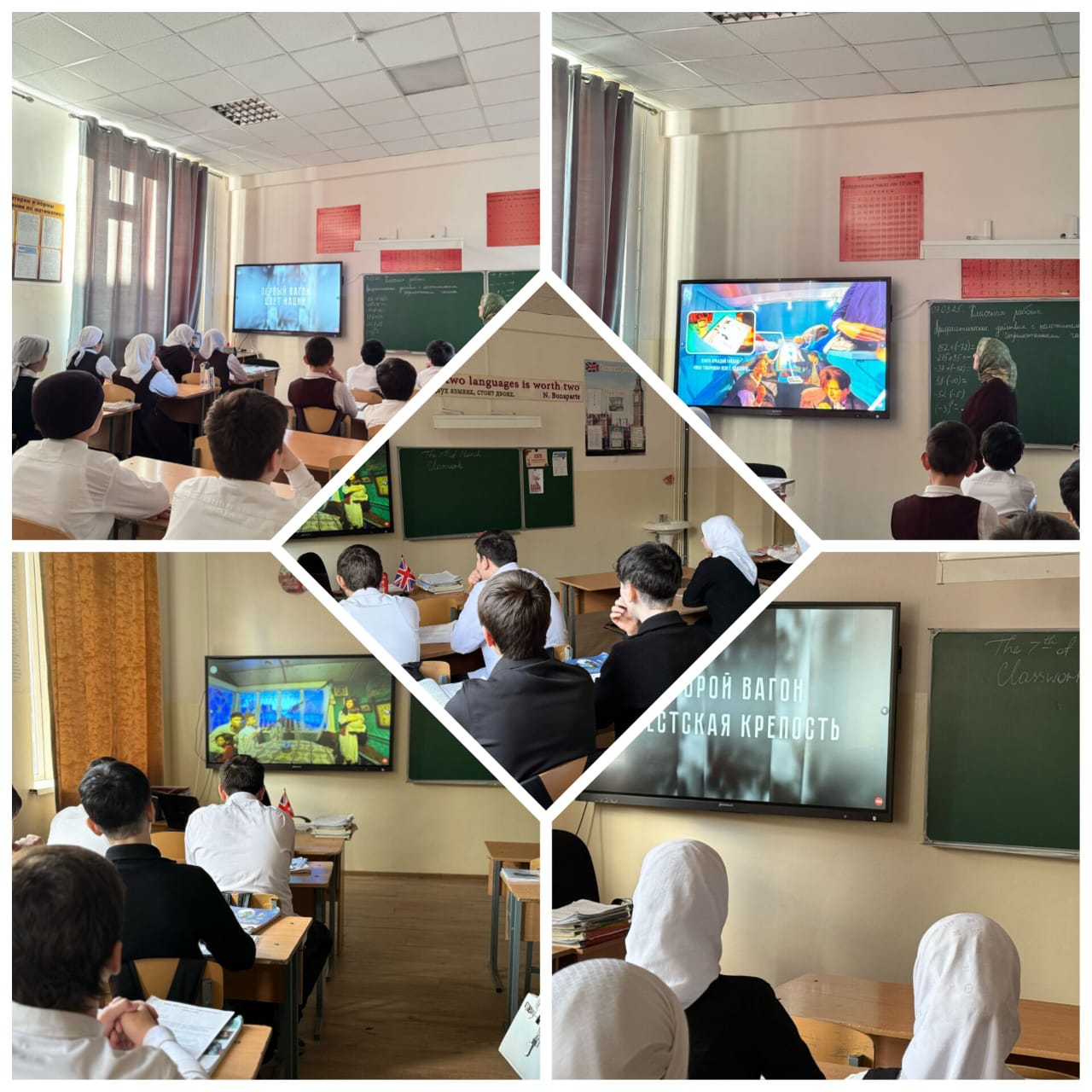 В рамках реализации просветительского проекта "Поезд Победы" в МБОУ "Гудермесская СШ √5" проведены единые уроки с демонстрацией виртуального тура по экспозициям