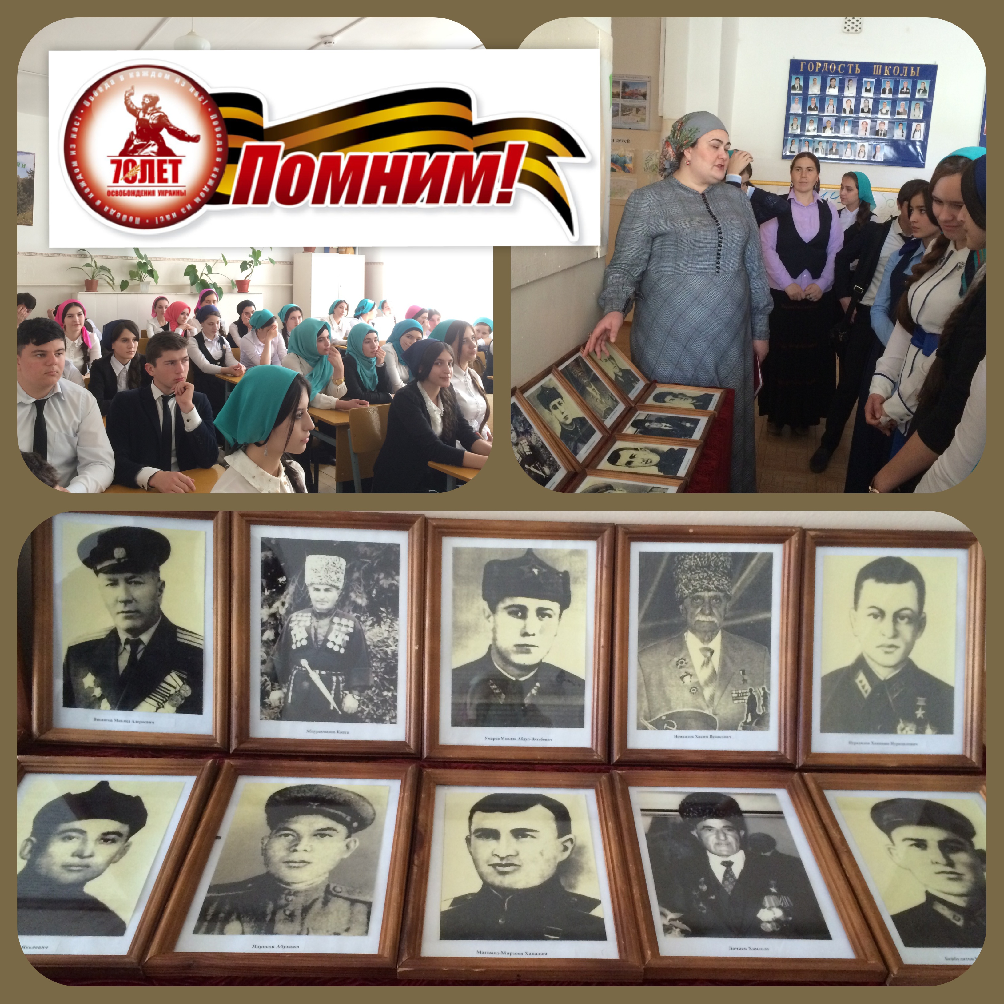 В рамках этой акции в нашей школе состоялся Урок Победы, который провела бывшая выпускница школы, заведующая отделом «Новейшей истории» Республиканского Национального Музея, Юсупова Неби Алвадиевна.Неби Алвадиевна познакомила ребят с архивными документами ВОВ, рассказала о том, какой вклад в великую Победу внесли жители Чеченской Республики. Ребята смогли побывать на передвижной выставке, рассказывающей о наших земляках - Героях Советского Союза. Урок Победы организовала и провела заместитель директора по ВР Висамирзаева Айшат Мовладиевна.