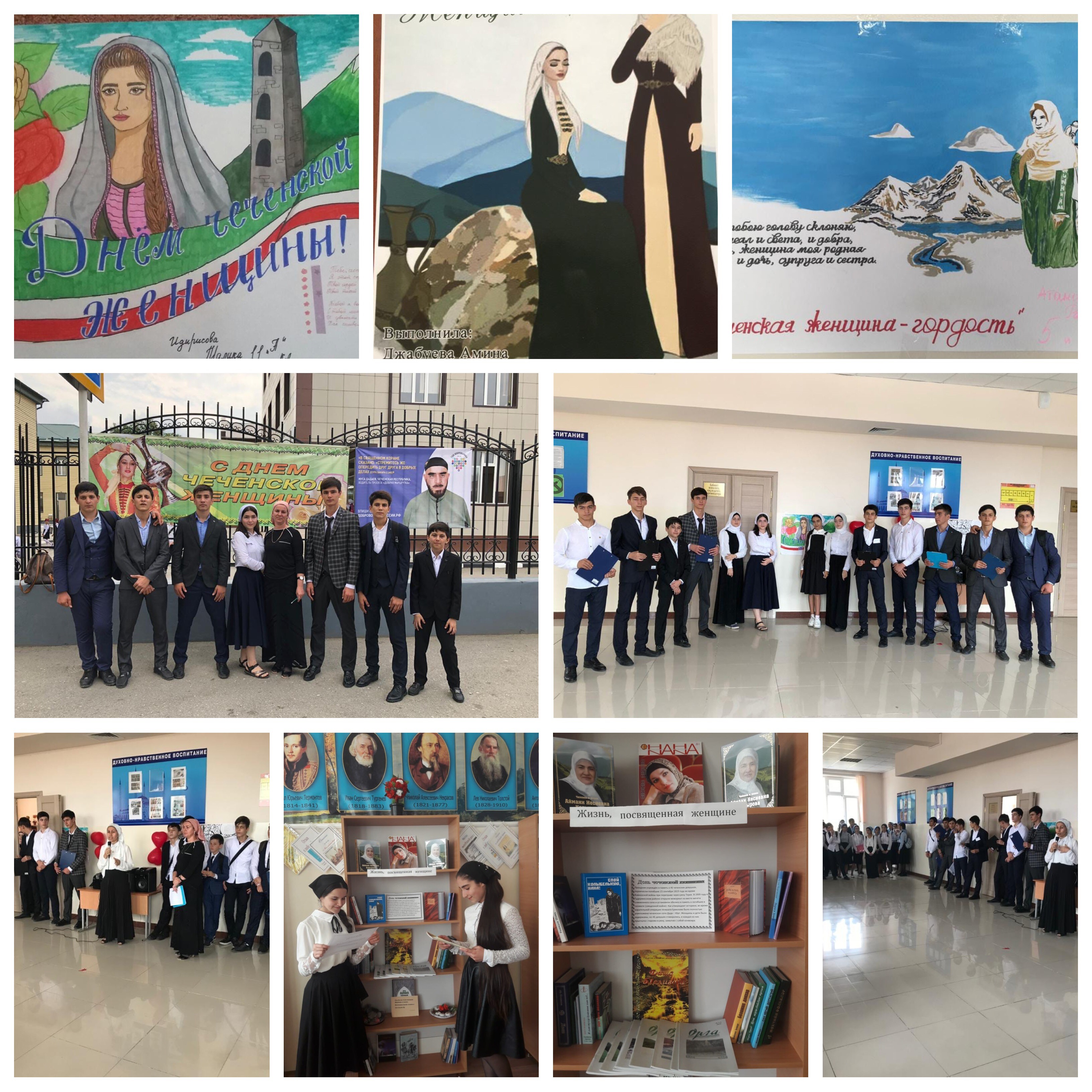 15.09.2018В рамках реализации единой концепции духовно - нравственного воспитания, 15.09.2018г., в нашей школе прошло празднование Дня чеченской женщины. Все учащиеся очень трепетно отнеслись к этому празднику. Но самыми активными участниками, оказались учащиеся 5 в, 10 и 11 классов. Согласно внутришкольному плану, составленному зам.директора по ВР, Саламовой М.Р. и утверждённому директором школы, Хастимировым А.А, был проведён конкурс сочинений, рисунков и стенгазет, а также книжно-иллюстрированная выставка, организованная библиотекарем школы, Адиевой М.И.