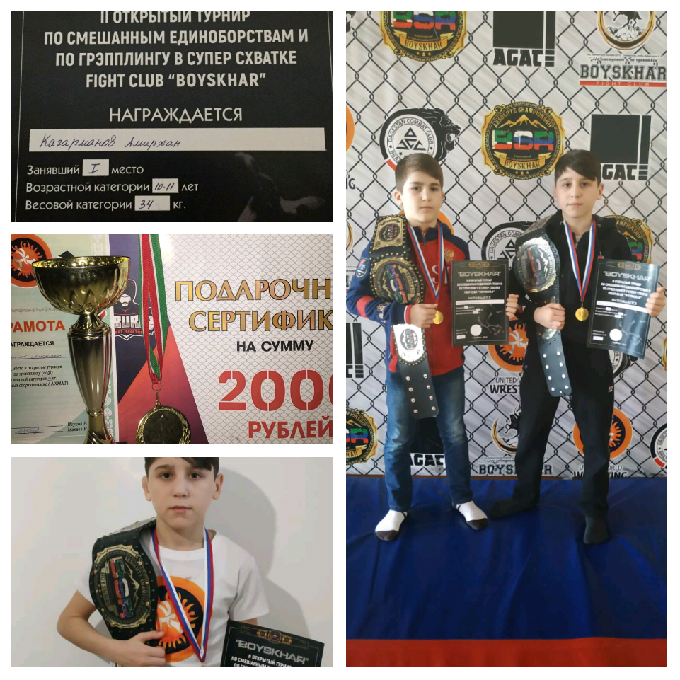 20.01.2019Кагарманов Амирхан и Кошелев Муслим, учащиеся 5 В и 7 В классов МБОУ "Гудермесская СШ № 5" снова радует нас своими победами! 19.01.2019: 1-е места в Хасавюрте на II открытом турнире по смешанным единоборстам и по грэпплингу"; 20.01.2019: 1-е места и сертификат за особую технику на открытом турнире по грэпплингу (nogi) в г. Грозный.